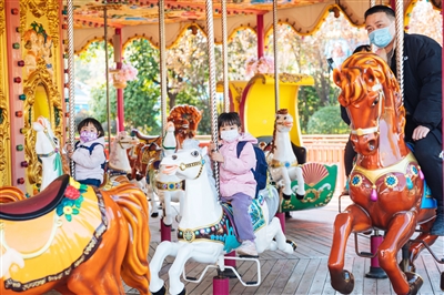 12月24日,游客在株洲方特欢乐世界休闲游玩。当天,株洲方特欢乐世界恢复开园,园区准备了丰富的演艺活动,让游客欢度假日。