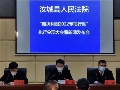 12月27日上午,郴州市汝城县人民法院召开“湘执利剑2022”专项执行行动新闻发布会,开展执行案款集中发放活动。会上,汝城法院执行局局长张勋通报了汝城法院“湘执利剑2022”专项执行行动总体开展情况。