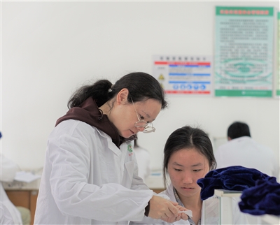 窗外樟树的绿枝成片地交织着,实验室里学生的白大褂干净挺括。时间过得很快,一堂90分钟的实验课接近尾声,请老师检验结果的学生越来越多。96、97、100……欧阳彬用红笔打上分。