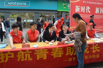 为持续推进“利剑护蕾”专项行动。近日,汨罗法院组织10余名干警在汨罗市天恒广场设置宣传点,走上街头积极开展“利剑护蕾”法治宣传活动。干警通过发放《未成年人保护法》《预防未成年人性侵宣传手册》等普法宣传资料,与来往的家长、儿童互动交流,用通俗易懂的语言向大家讲解相关法律知识。共发放宣传资料100余份,接受法律咨询10余人次。有效提升群众关于未成年人保护的法治意识和法治观念,营造全社会关爱保护未成年人健康成长的浓厚氛围。