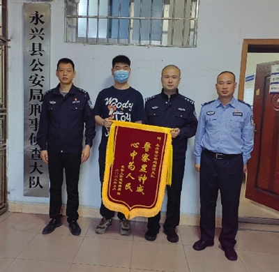 5月10日,受害者许建某儿子怀着感激的心情来到县公安局,送上“警察显神威,心中为人民”的锦旗以示感谢。