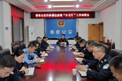 5月11日晚,娄星区副区长、娄星公安分局局长罗文卫组织召开整治涉黄小卡片工作部署会。会议安排部署行动内容及各单位分工,由治安大队牵头,刑侦大队、网安大队等专业警种全力提供技术及业务指导支持,各派出所的“两队一室”积极作为,特别是社区警务室做好基础摸排,掌握好违法犯罪分子的作案规律,有针对性地开展夜间巡逻防控等工作。