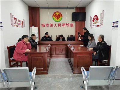 在杨市镇,记者看到一站式矛盾纠纷多元化解中心与公共法律服务站相邻而设。中心设有矛盾纠纷多元化解工作室、远程调解庭、法庭便民服务点,各类相关规章制度依次醒目地挂在墙上。