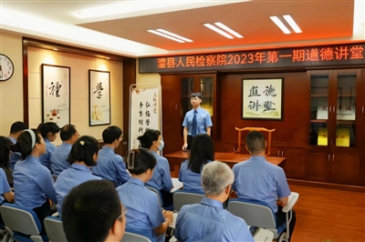 5月19日上午,澧县人民检察院举办“崇德尚廉·清风润心”主题道德讲堂活动。本期道德讲堂共分为6个环节:做反省、唱歌曲、学模范、诵经典、谈感悟、送祝福,引导干警自觉成为廉洁自律的传播者和践行者。