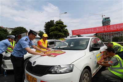 ↑6月5日,通道侗族自治县城东区萨岁广场,通道交警 、教育局、企业、志愿者在为爱心车辆粘贴“爱心送考 助力高考”标志。当天,通道县举行高考“爱心送考”志愿者服务启动仪式,50多辆爱心车主在2023年高考期间为考生提供免费送考服务,确保考生顺利赴考。通讯员 石猛雷 摄 |