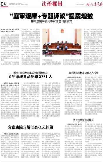 王华玉表示,近年来,郴州法院充分发挥审判职能作用,以“毒品一日不除,禁毒斗争就一日不能松懈”的韧劲,对毒品犯罪案件从严快判。全面提升毒品案件审判质效,深入参与禁毒综合治理,为全市禁毒工作提供有力的司法保障,有力助推郴州构建和谐平安无毒的社会环境。
