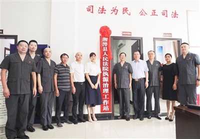 本报讯(通讯员 王娇 谷赞)7月14日,湘潭县法院执源治理工作站挂牌,系全省首家。湘潭中院执行局局长肖剑英、湘潭县委政法委副书记陈大伟参加,县法院党组书记、院长曾朝阳主持。人大代表李燕群、刘汉云、政协委员刘山丰、黄万香全程见证。
