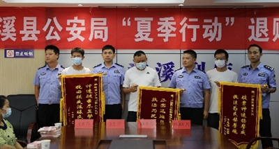 8月8日,泸溪公安举行夏季治安打击整治专项行动退赃大会。副县长、公安局长张远康现场向5名群众返还被盗被骗现金47万余元,并表明泸溪公安将一如既往、攻坚克难,持续严厉打击违法犯罪、倾尽全力挽回群众损失的坚定决心。