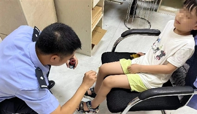 “哎呀,我们都急死了,多亏你们找到了我孩子,真是太感谢了!”8月3日23时,在城北派出所见到自己走失的孩子,家长十分激动。当晚19时,县公安局巡特警大队接到110指令:南平路一店主报警称自己店里来了一个走失的小男孩。巡特警大队民警迅速赶到该店,见小孩身边无大人陪伴,疑似走失,膝盖有摔伤。为确保男童安全。巡逻民警将男童带到辖区城北派出所。民警先给小男孩受伤的膝盖上药,耐心询问其家人信息。但男童精神高度紧张,对家庭住址和家人的姓名、电话无法准确描述,民警多次询问也未得到有效信息。为了尽快找到孩子父母。民警一边安抚男孩情绪,一边走访寻找。通过微信朋友圈发布寻人启事,全力以赴寻找孩子家人。经过近两小时寻找,男孩父母焦急地赶到派出所将孩子接回。经了解,这名小男孩跟着父母在外吃烧烤,然后自己出来遛达,越走越远。其父母一时疏忽大意,没有注意孩子跑出了烧烤店。