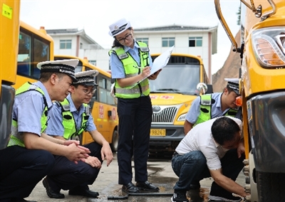 8月28日,通道侗族自治县公安局交管中心民警来到创佳校车服务有限公司,对公司21辆运营校车开展专项安全检查。重点检查校车车况、逃生装置、灭火器等安全设施的性能,及时发现并处置相关安全隐患,确保新学期师生乘车安全。通讯员 杨通智