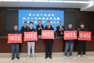 蓝山县人民法院党组书记、院长陈祁陵通报2023年以来执行工作情况。2023年以来,法院以审判工作现代化为抓手,进一步做实公正与效率工作主题,强势开展“湘执利剑2023”“百日执行攻坚”“冬日亮剑”等专项执行行动,持续攻坚切实解决执行难。受理各类执行案件2206件,执结2011件,结案率91.16%,执行到位金额2.79亿元,尽最大努力将胜诉当事人纸上权利变成真金白银,以良好的执行成效推动司法更加公正、高效、权威。法院先后被评为全市法院执行工作先进单位、全市法院优化营商环境工作先进单位。