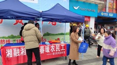 本报讯(通讯员 文静)3月4日下午,株洲渌口区司法局组织区法援中心、公证处、湖南云天(株洲)律师事务所等单位,在渌口镇中央时代广场开展以“湘融湘爱·春暖农民工”和纪念公证法施行18周年为主题的法治宣传教育活动。