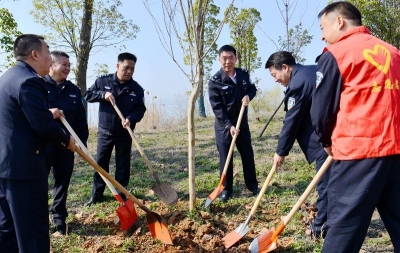 本报讯(通讯员 牟建平)3月12日,常德市交警支队机关党员志愿者来到柳叶湖旅游度假区环湖路绿化带,开展义务植树活动,为魅力常德添新绿,为文明城市添魅力。
