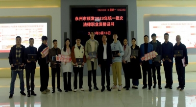 永州2023年度统一批次法律职业资格证书获得者达175人