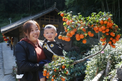 从吉首出发,沿着绕山公路驱车30分钟,便来到群山环绕、风景秀丽的栗溪村。这里紧邻矮寨5A级景区,也是“美丽吉首”的新兴乡村游景点之一。步入栗溪村,田间地头、农家院落、道路两边,一盆盆造型各异的盆景映入眼帘、一颗颗状似柿子的金黄色果实挂满树枝,场景颇为壮观。这金黄色果实就是金弹子,近年在盆栽市场上广受追捧,堪称盆栽界网红。