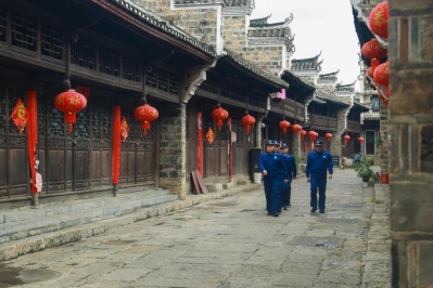 “古镇木质房屋多、老人儿童多,一旦起火后果不堪设想。所以每晚都会挨家挨户提醒大家熄火关电,我们还延续了从前守村人打更的作法,确保古镇居民的平安。”专职队队长李小民说。