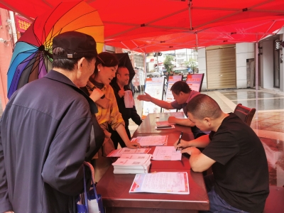 近日,古丈县纪委监委在城区中心摆摊设点开展信访法治化宣传月活动,引导群众依法办事,依法反映诉求。图为县纪委监委干部认真接待群众,做好政策讲解,并对群众所反映的问题登记在册。