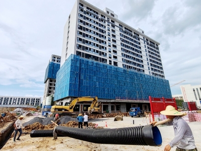 施工现场呈现出一派繁忙景象,建筑机械轰鸣,工人们辛勤作业,共同谱写了一曲奋进交响曲。“现在地面正在进行雨污水管网施工,预计一周完成,紧接着就要开始绿化施工了。此外,项目配套的健身广场也在同步建设中。”产投集团项目管理人员介绍,目前,保障性租赁住房项目外墙装修和室内装修正同步进行,其它区域也在交叉施工快速推进,预计8月底可交付一栋宿舍楼和配套用房,10月底完成剩余两栋宿舍楼的交付。