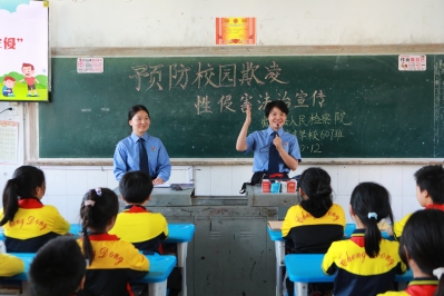 湖南法治报讯(通讯员 邓璇)青少年是祖国的未来。将法治知识带到中小学生的课堂,就是将法治种子播撒在每一位学生的心田。10月12日,临武县检察院派出法治副校长侯娟娟及法治辅导员雷琼蕙英来到城东学校,以预防校园欺凌和性侵害为主题,为学生们送上了一堂生动的普法教育课。