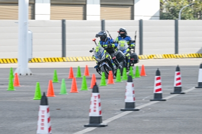 12月16日至17日,长沙市公安局特巡警支队2024年度特警警用摩托车驾驶技能大比武在樊塘训练基地举行。42名铁骑队员全副武装,驾驶着重达200公斤的警用摩托车秀出各种花式操作。