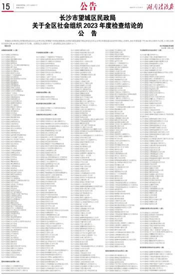 根据《社会团体登记管理条例》《民办非企业单位登记管理暂行条例》《湖南省社会团体年度检查暂行规定》和《民办非企业单位年度检查办法》的有关规定,经审核,2023年度检查下列364家社会组织为合格、11家社会组织为基本合格、85家社会组织为不合格。注销登记社会组织17个、新注册登记的社会组织11个。
