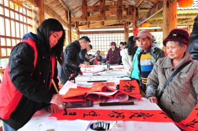 近日,湖南省青年书法家协会成员和永顺县书法爱好者在永顺县高坪乡三角岩村开展向村民送廉洁春联活动。