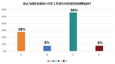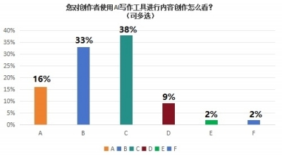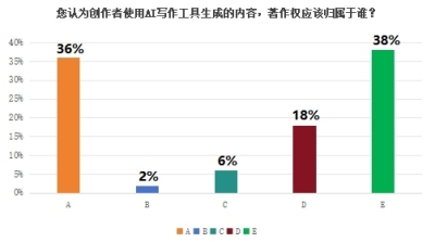 AI生成合成内容让原创边界变得模糊。创作者使用AI写作工具生成的内容,著作权应该归谁?调查中选择“视情况而定”的有38%,选择“创作者本人”有36%。