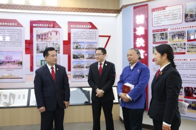 调研期间,龙献文听取了湘西法院审判执行工作情况汇报,实地查看了湘西中院文化室、清廉书屋等文化阵地,详细了解湘西中院“公正 为民 向上 清廉”的院训精神和相关文化成果情况。他对法院坚持文化自信、弘扬传统文化和干警昂扬向上的精气神表示赞赏,就紧扣文化品牌内核、打造文化特色亮点等方面提出意见和建议,希望法院把文化的“软实力”转化为审判执行提质增效的“硬支撑”。