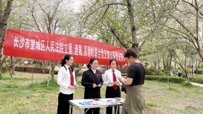 湖南法治报讯(通讯员 崔咏 陈洁)春风拂面,玉湖公园内千株樱花如云似霞。近日,长沙市望城区人民法院将普法课堂搬到了樱花树下,与居民、游客在花海中畅聊法律知识,为烂漫春色增添了一抹法治色彩。