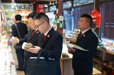 4月9日,凤凰县人民检察院组织干警到凤凰县古城区开展凤凰姜糖食品安全公益诉讼专项监督,进一步加强“凤凰姜糖”地理标志证明商标知识产权协同保护。