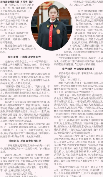 向杉杉开始阅读大量刑事审判理论资料,不断研习判例和裁判文书,丰富知识储备。面对拿不准吃不透的法律问题,她总是先仔细钻研相关法条,再带着问题请教前辈。每办完一个案子,她会重新总结反思,将心得梳理出来,时时翻看提醒自己。就这样,向杉杉逐步把弱项变成了强项,在审判过程中也更加专业精进。