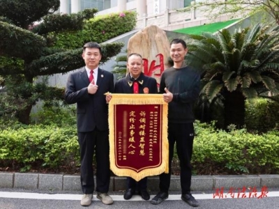 湖南法治报讯(通讯员 李志豪 刘芝)近日,一起相邻纠纷的当事人来到衡阳市中院,将一面锦旗送到民一庭,表达对办案法官的感谢。