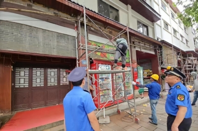 5月以来,岳阳楼三大队以洞庭北路景区沿线为重点,全面开展门头店招规范整治专项行动,对64家商户招牌进行个性化改造,拆除一店多招的招牌131处。联合市城投集团(文旅公司)完成18家商户门头改造工程。对洞庭南路沿线门店乱张贴广告行为进行铲除,共铲除16家;拆除巴陵西路违规广告牌28处。