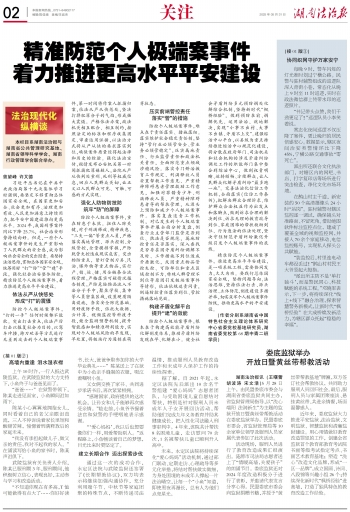 精准防范个人极端案事件,推进更高水平平安建设,是一项系统工程,需要协同发力,久久为功。要践行总体国家安全观,坚持问题导向、法治思维,坚持依法打击、源头治理、立体防范、制度建设多措并举,切实筑牢个人极端案事件防线,推动更高水平的平安建设。