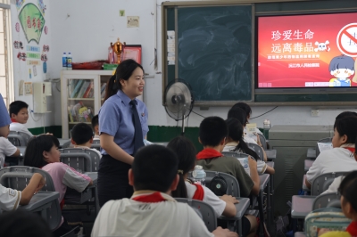 在莲花塘小学,检察干警依托法治副校长工作机制为师生带去了一堂生动的禁毒法治教育课。检察官通过真实案例讲解、互动问答和发放禁毒手册资料,深入浅出地为同学们讲解麻精药品的概念、危害以及如何正确对待麻精药品。检察官特别提醒同学们警惕伪装型毒品,如看似糖果的麻精类药品、含致瘾成分的“电子烟”等,引导他们增强分辨能力和自我保护意识。