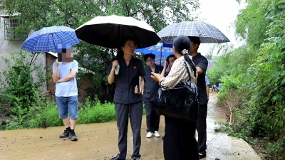 庭审结束后,法庭工作人员向旁听村民发放普法手册,并对土地承包、婚姻继承等问题进行现场解答。由于双方对矛盾的产生分歧较大,为厘清矛盾,合议庭在休庭后冒雨现场勘验宅基地争议地点,并对双方观点进行了详细记录。