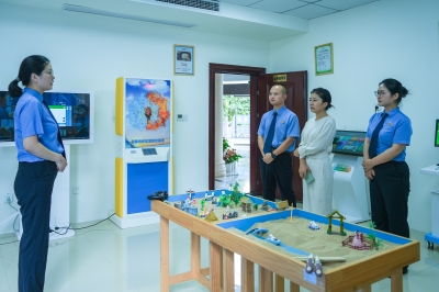 在讲解员带领下,石佳先后参观了该院12309检察服务中心、未成年人一站式办案中心、审讯室、检察听证室等功能区以及民族团结进步主题橱窗。