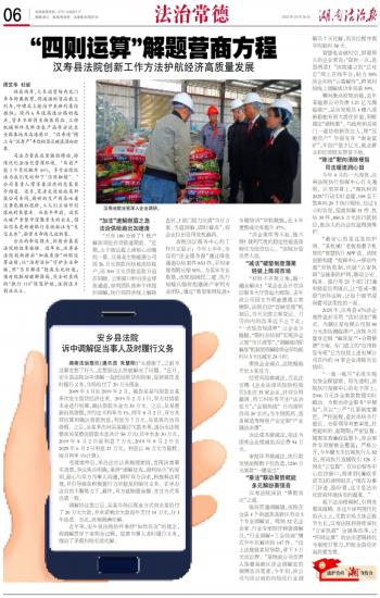 近年来,安乡县法院始终秉持“如我在诉”的理念,将调解贯穿于审判全过程,促推当事人及时履行义务,推动了矛盾纠纷实质化解。