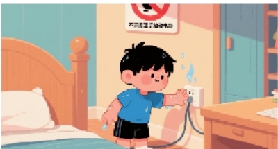 尚继武建议家长要提醒孩子注意用电安全,湿手、湿毛巾等不能触摸、擦拭开关、插座等,湿手也不能插拔插头和操作带电的电器设备;使用电器时,应注意电源线不要被重物压住,否则可能会造成电线折断或绝缘层破损,导致短路或漏电;插拔电源插头时要着力于插头,不要拉拽电线,防止线路损坏产生危险;手机等电子产品不要放在床边充电,一旦爆炸可能直接伤害到床上的人,引发火灾;手机充电时不要接打电话。