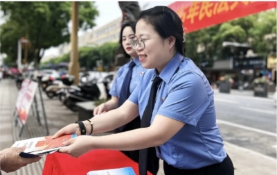 4月23日,龙舟广场人头攒动。“沅检乐读社”被授予“沅陵县全民阅读优秀乐读社”称号。干警向鑫银向群众推荐《法治的细节》:“这本书通过热点案件解析法律常识,很适合大众阅读。”