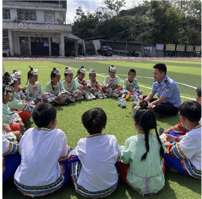 活动现场,戒毒民警谢忠阳成为围观“焦点”——他结合真实案例,用通俗易懂的语言讲解禁戒毒核心知识,将毒品的危害、识别方法融入日常场景。“你问我答”“禁毒捕手”等互动闯关游戏轮番上演,孩子们踊跃参与,现场笑声与答题声此起彼伏。随后,数十名苗族学生代表走上舞台,为宣讲团队演唱了原创民族歌曲《大山的小孩》,婉转的歌声不仅传递出孩子们的感恩之情,更让民警感受到民族地区青少年对健康成长的向往。