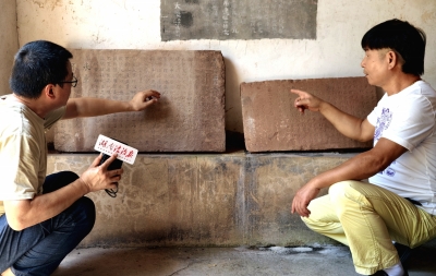 村民从废墟里抢出古碑