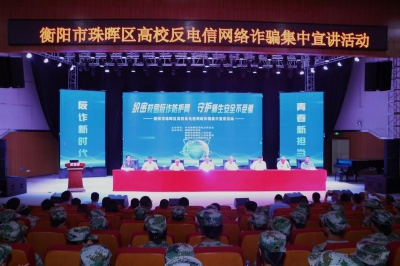 9月18日上午,衡阳师范学院东校区音乐楼演艺厅内座无虚席,一场覆盖全区6大高校、守护数万师生财产安全的反诈宣传活动在此拉开帷幕。自今年9月上旬以来,由珠晖区委政法委主办,区法院、区检察院、珠晖公安分局及多个乡街、高校共同承办的“织密校园反诈防护网,守护师生安全不受骗”高校联合反诈宣讲行动,以高度的政治自觉、创新的宣传形式、显著的实战成效,赢得了广大师生和社会各界的广泛赞誉,为平安珠晖、法治珠晖建设注入了新的活力。