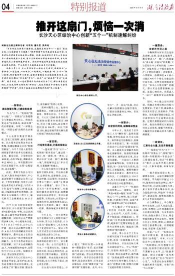 今年9月1日,天心区综治中心新址正式启用,创新推出“一智驱动、一窗受理、一体联办、一线调处、一键服务”的“五个一”核心机制,将分散的部门资源、治理力量整合为全链条服务体系,让矛盾纠纷化解从“多头跑”变为“一站办”,从“被动等”变为“主动解”。截至目前,中心受理事项平均办结时长为7天,群众满意度达96%,不仅成为群众维权的“加油站”,更成为辖区平安稳定与营商环境的“守护者”,书写了基层社会治理现代化的“天心答卷”。