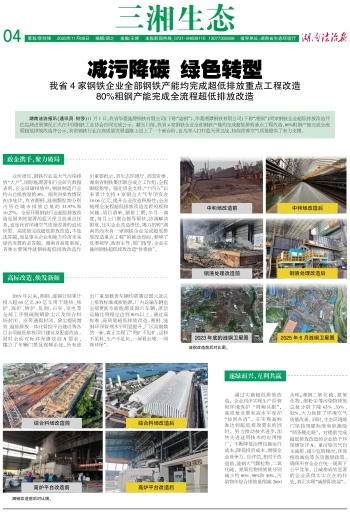 湖南法治报讯(通讯员 何莎)11月1日,我省华菱涟源钢铁有限公司(下称“涟钢”)、华菱湘潭钢铁有限公司(下称“湘钢”)两家钢铁企业超低排放改造评估监测进展情况正式在中国钢铁工业协会官网完成公示。截至目前,我省4家钢铁企业全部钢铁产能均完成超低排放重点工程改造,80%粗钢产能完成全流程超低排放改造并公示,我省钢铁行业在高质量发展道路上迈上了一个新台阶,也为深入打好蓝天保卫战、持续改善空气质量提供了有力支撑。