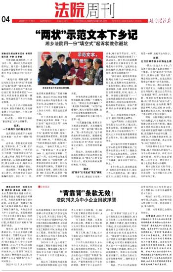 “两状”示范文本下乡,只是湘乡法院融入基层治理的一个缩影。这份“填空式”文书的背后,是湘乡法院“司法为民”理念的生动体现,也是法院拓展普法广度的一次具体实践。