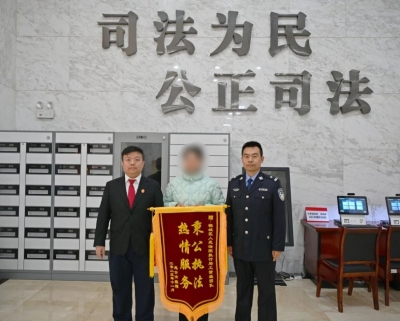 湖南法治报讯(通讯员 甘倍源)“太感谢了!这笔拖了十多年的借款终于要回来了。”近日,案件当事人赵某某(原告周某某妻子)来到怀化市鹤城区法院,将一面锦旗送到执行法官牛飞飞手中,以当面感谢法院及法官尽心履职维护群众合法权益。