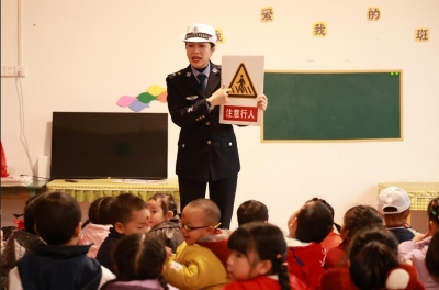 近日,通道侗族自治县双江镇马龙村萌芽幼儿园内,一抹藏青蓝格外亲切。交通管理大队宣传人员俯身融入孩子们中间,手持彩色交通标志牌,用活泼的童言警语讲解着“一停二看三通过”“红灯停、绿灯行”背后的安全意义。孩子们仰起小脸,眼中有光,跟着一字一句认真跟读:“这是注意行人”“这是禁止停车”……