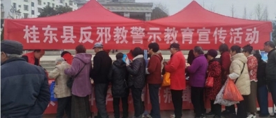 近日,桂东县委政法委联合沙田镇在“第一军规”广场,利用赶集日开展反邪教警示教育集中宣传活动。