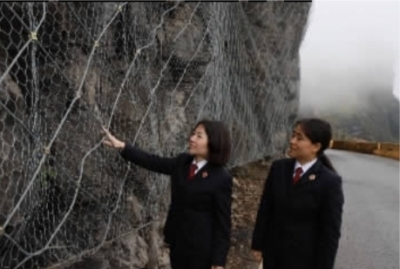 代表建议,就是民生哨声。检察官立即赶赴现场勘查,用无人机航拍取证,走访沿线村民。经调查核实:里八公路部分路段受地质条件影响,路面狭窄,且常年雨水冲刷导致岩石开裂悬空,落石现象频发——每一个问题都关乎群众生命安全。